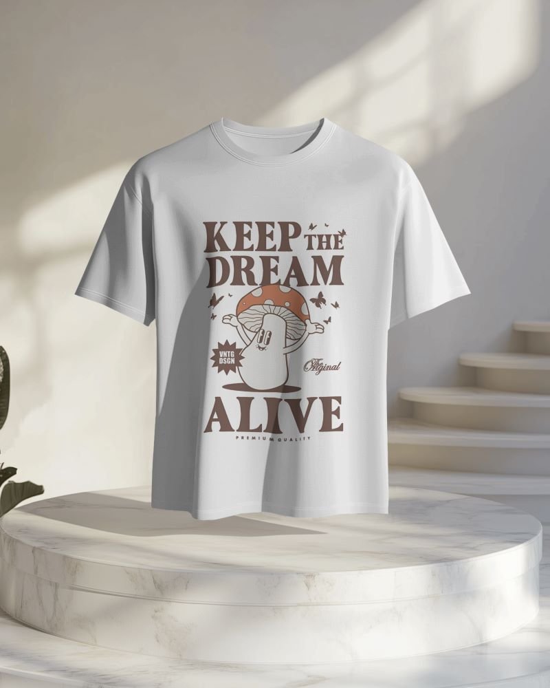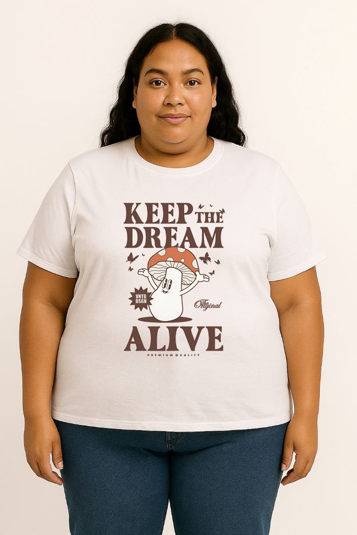 Step into a world of wonder with our Keep Dream Alive Typography Mushroom T-Shirt. Featuring an enchanting design with dreamy lettering and magical mushroom art, this tee is perfect for free spirits, nature lovers, and anyone who believes in the power of imagination.